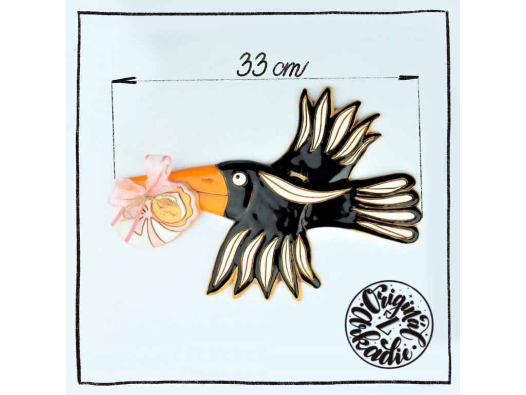 Jedná se o plochý výrobek, který je vyroben technikou vtlačení keramické hmoty do sádrové formy. Po přežahu v keramické peci je glazován barevnými glazurami a opět vypálen v keramické peci.
